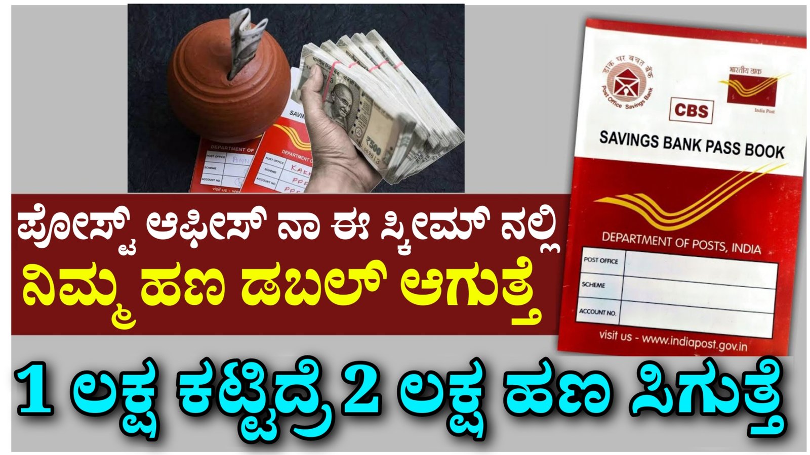 ಭಾರತ ಸರ್ಕಾರದ (Government of India) ಬೆಂಬಲ ಹೊಂದಿರುವ ಮತ್ತು ಪೋಸ್ಟ್ ಆಫೀಸ್ ಮೂಲಕ ನಡೆಸಲಾಗುವ ಈ ಯೋಜನೆ, ಹೂಡಿಕೆ ಮಾಡಿದ ಹಣವನ್ನು 115 ತಿಂಗಳುಗಳಲ್ಲಿ (9 ವರ್ಷ 7 ತಿಂಗಳು) ಡಬಲ್ ಮಾಡುತ್ತದೆ.