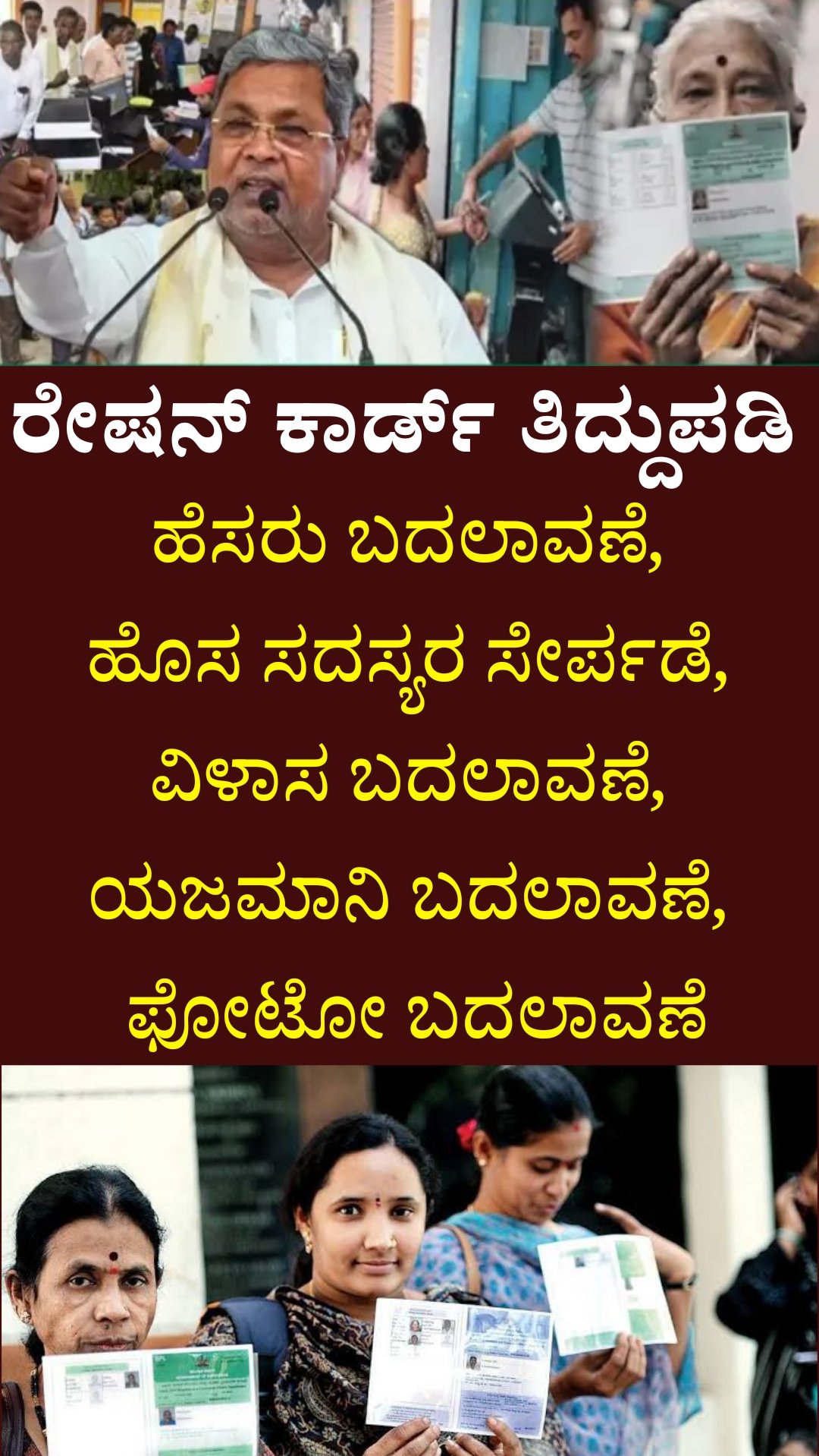 ಈ ಲೇಖನದಲ್ಲಿ ನಾವು 2025ರ ರೇಷನ್ ಕಾರ್ಡ್ ತಿದ್ದುಪಡಿ ಕುರಿತ ಸಂಪೂರ್ಣ ಮಾಹಿತಿ – ಅರ್ಜಿ ಸಲ್ಲಿಸುವ ದಿನಾಂಕ, ಯಾವ ತಿದ್ದುಪಡಿಗಳನ್ನು ಮಾಡಿಸಬಹುದು, ಬೇಕಾಗುವ ದಾಖಲೆಗಳು, ಅರ್ಜಿ ಸಲ್ಲಿಸುವ ವಿಧಾನ ಇತ್ಯಾದಿಗಳನ್ನು ನೋಡೋಣ.